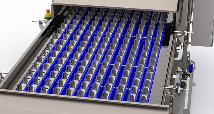 Our Slicer produces Celery sticks in any length of cuts with ease. As the product goes through the cutting head, the top and tail or any section of the product that is not desired fall into the bottom cull conveyor and is conveyed to your disposal source. The machine is equipped with a quick release blade assembly to make blade changes fast and easy. These units can be customized to fit your needs and or products.