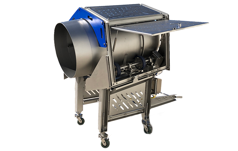 Our Tumble Barrel Mixer is a continuous inline flow mixer that is used when you need to blend or mix multiple products evenly. The products are fed from one end of the barrel and are gently tumbled as they pass through and discharged from the other end of the barrel. Different sizes and lengths are available depending on products and capacities needed.